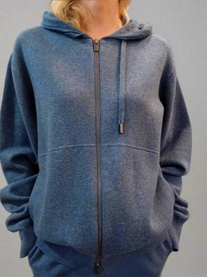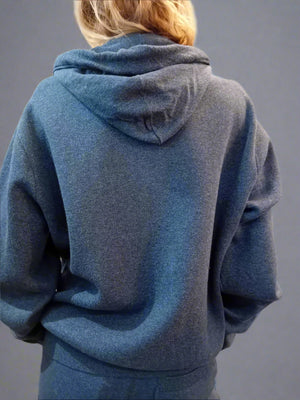This oversized hooded sweater is made from a durable double-faced knit, making it suitable for a wide range of seasons.