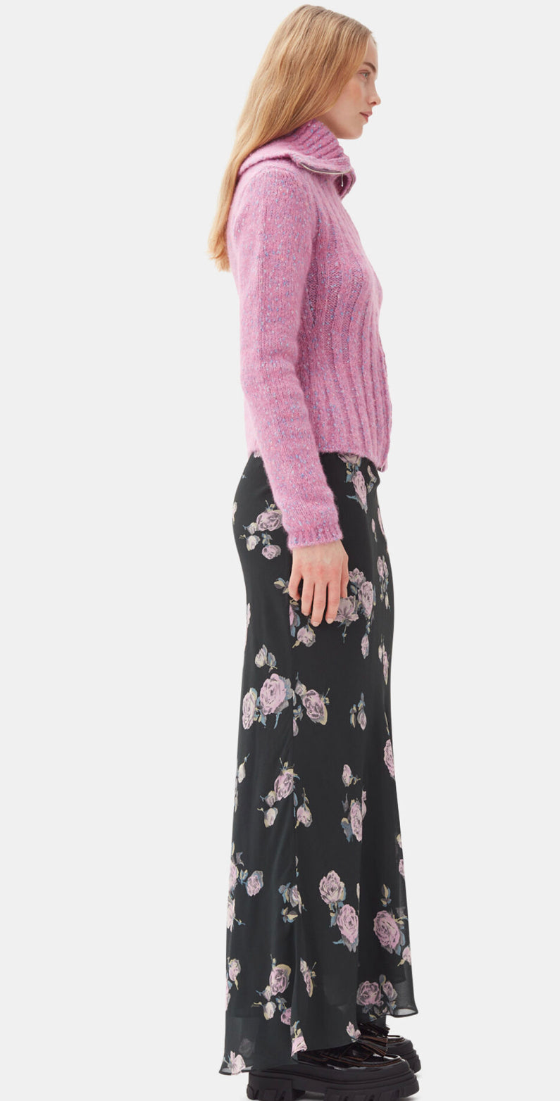 This Pink Highneck Zip Cardigan features a full front zipper closure with a silver zipper, a high collar that can be worn up or folded down and an embroidered GANNI logo.