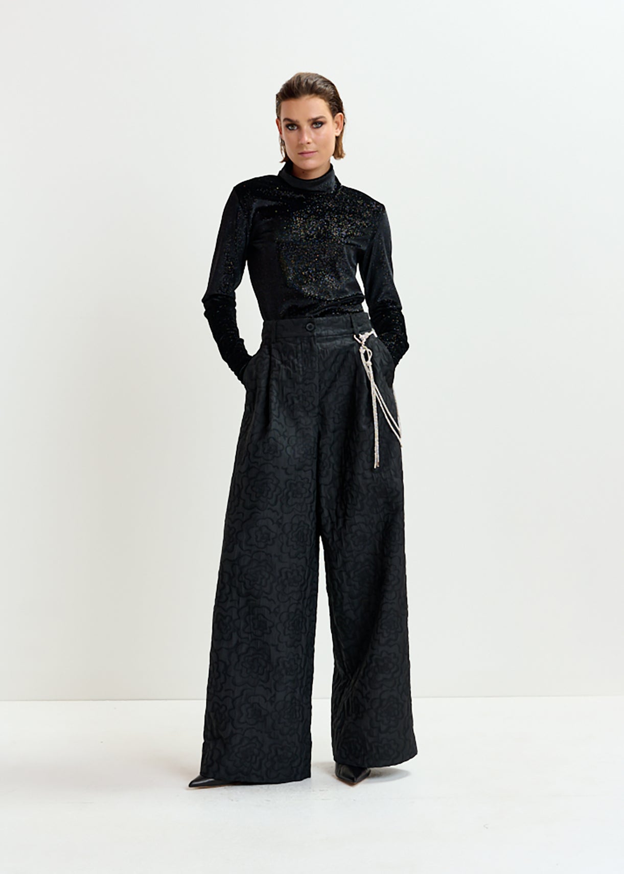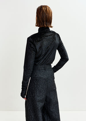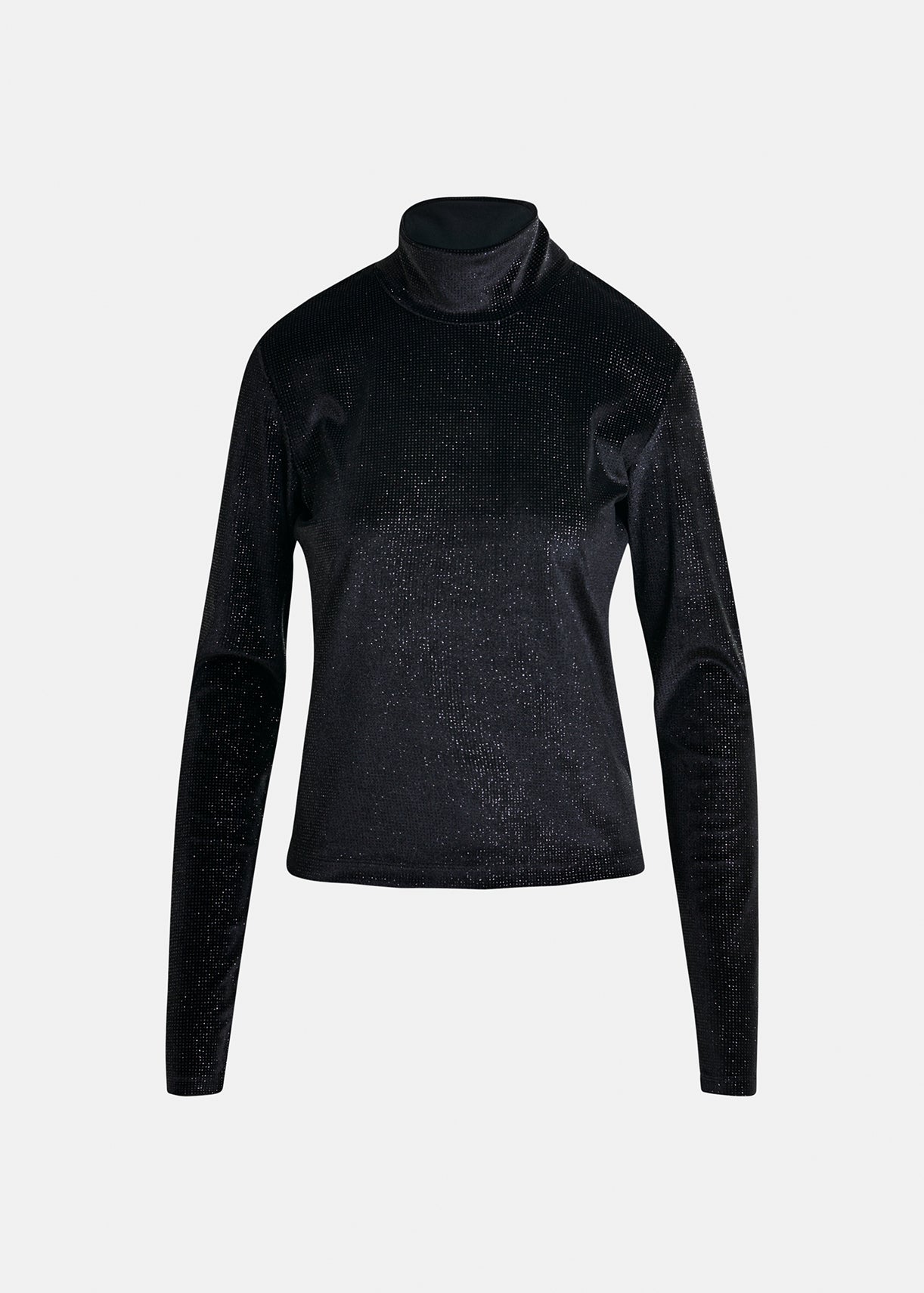 Get ready to shine on the dance floor with this turtleneck top, cut from a comfortable stretch-jersey fabric embellished with black-tone dots for a glitter-like finish. Its close fit ensures effortless pairing with both tailored pieces and skirts.