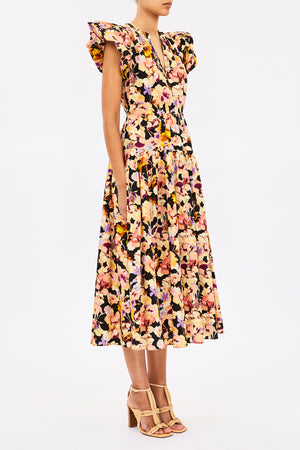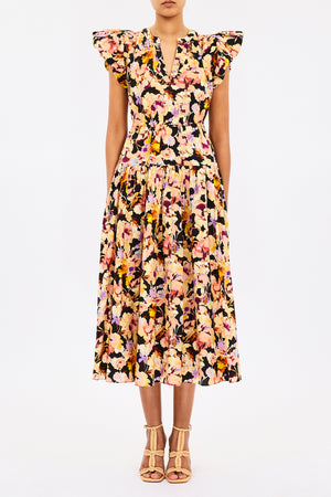 A signature Ulla Johnson silhouette, the Marin Dress is cut from poplin that’s saturated with gestural florals painted with a translucent, watercolor effect. The multicolored silhouette makes a statement with bubble sleeves that are balanced by a pleated hem with graceful volume.