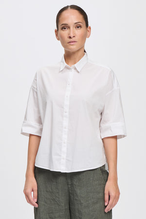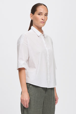 A white cotton short-sleeve shirt.