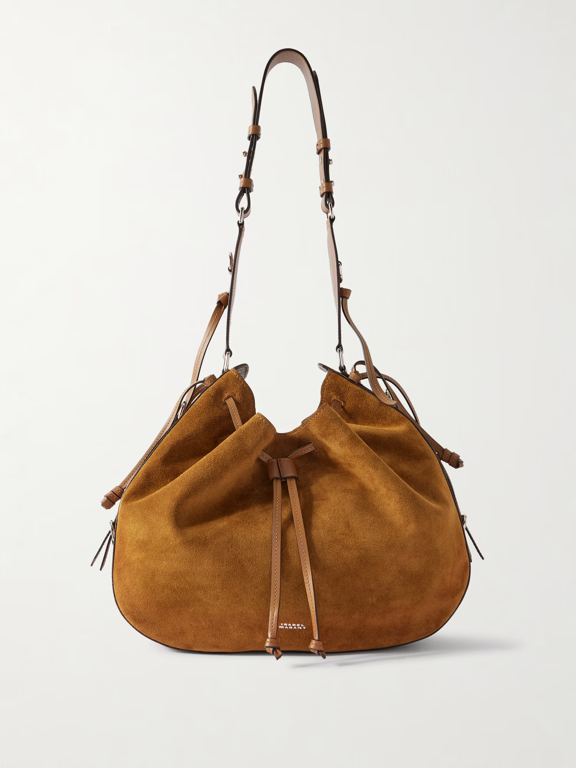 Isabel Marant's 'Bolton' bag is threaded with leather drawstrings to create a slouchy shape. Crafted from supple suede, it’s detailed with foiled logo lettering to match the silver-tone hardware and has enough space inside for your phone, planner and wallet. Adjust the shoulder strap to your preferred drop.