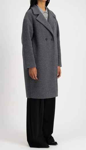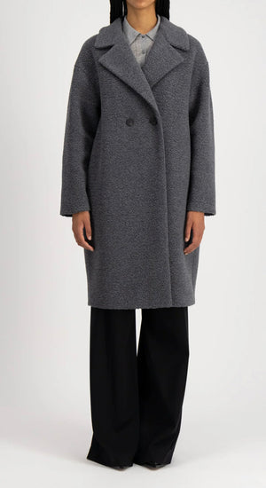 Dropped shoulder coat, lined in knitted bouclé. Oversized, knee-length coat with dropped shoulders, long wide sleeve and double-breasted fastening featuring notched lapel and side-seam pockets. Raw-edge finish.Made in Italy with Italian fabric.