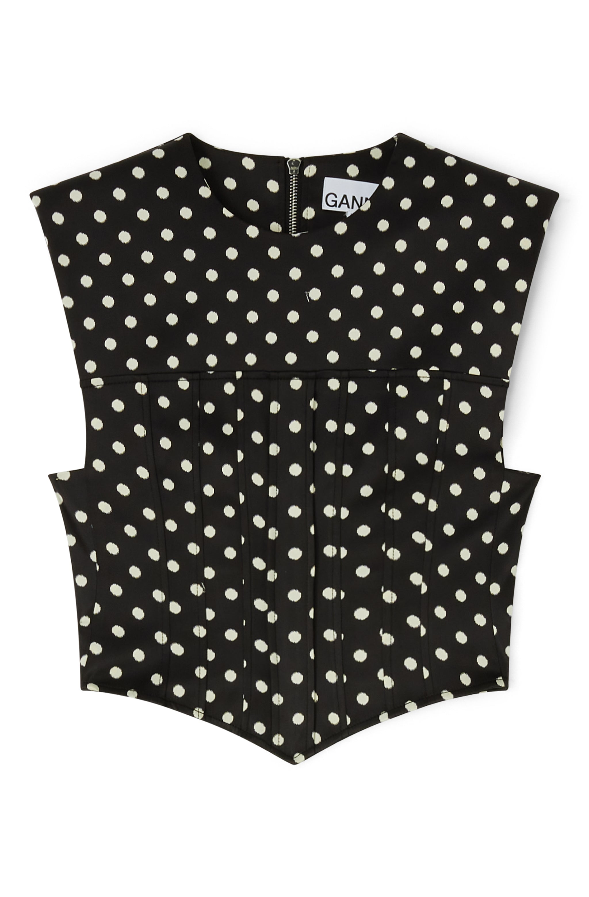 This top features a round neckline, zipper closure and an elasticated back panel.