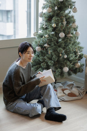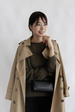 This Khaki pullover is made from Japanese wool spun from ultra-fine silk and carefully selected super-kid mohair. It is soft to the touch and has the elegant sheen of silk. Slit on the side. The yarns have been treated to prevent static electricity, static electricity is unlikely to occur even when clothing is layered.