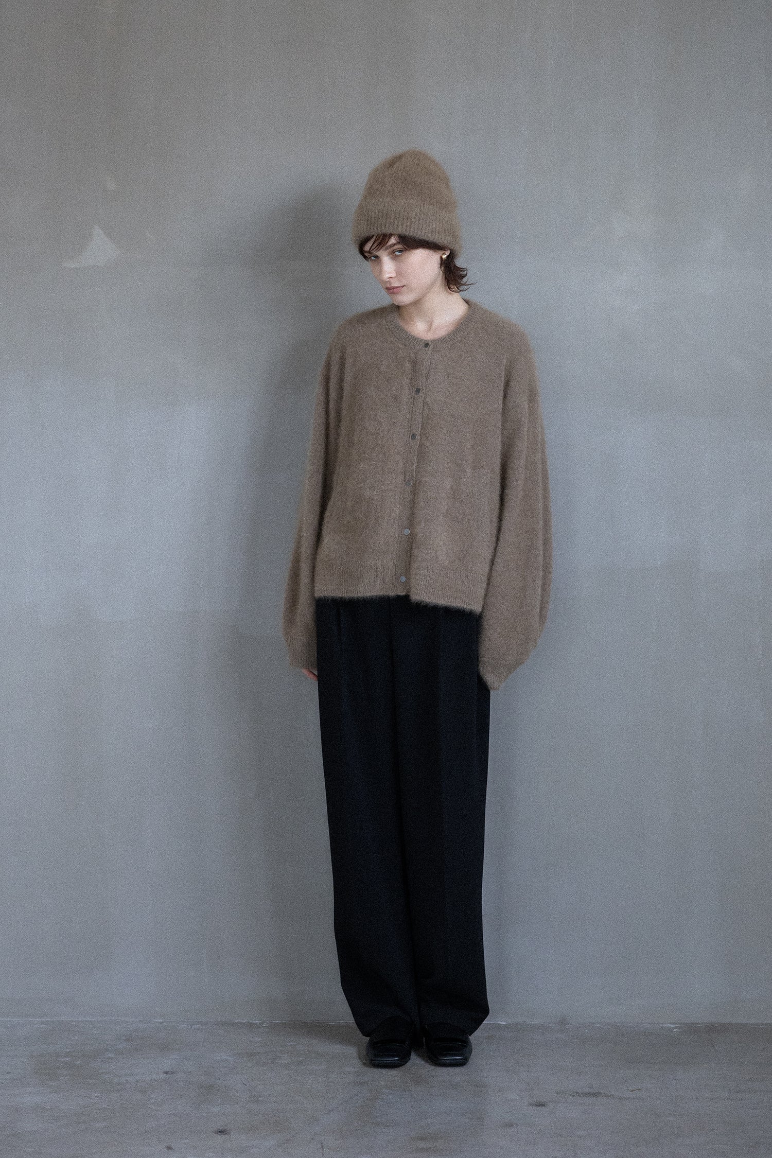 This beanie is made of a very light and warm material obtained by brushing raccoon fur