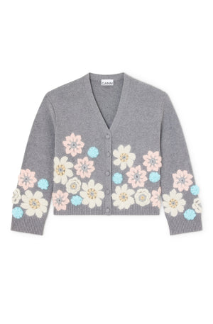 Ganni Cotton Cashmere Flower Cardigan