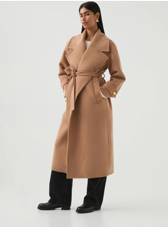 £795.00 GBPMasnada Brown Painted Double Breasted Belted Long Coat