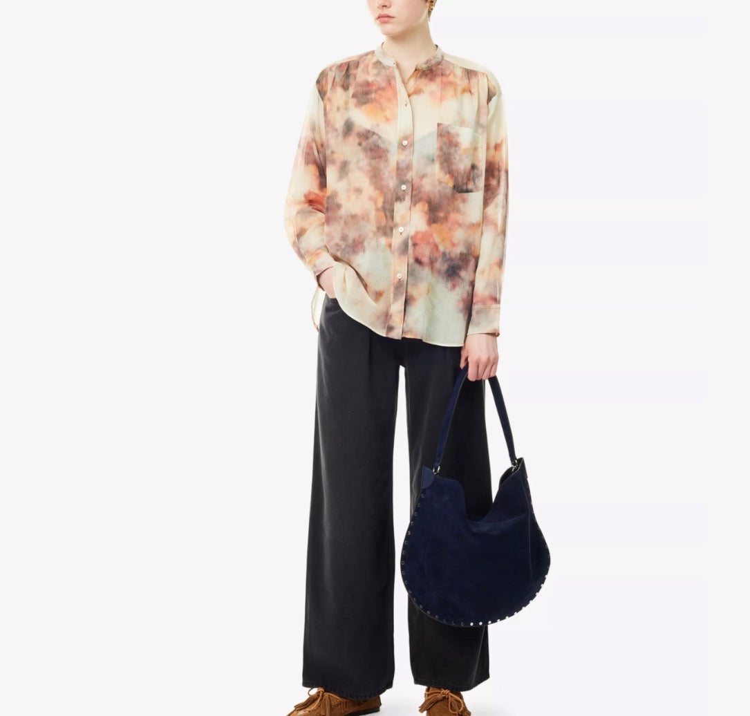 Isabel Marant Etoile Mexika shirt is a long-sleeved blouse made from a fluid material that drapes beautifully. It features an adjustable drawstring neckline that can be worn loose or cinched in for a more fitted look. The loose fit of the shirt makes it comfortable and easy to wear, while still looking stylish and chic.