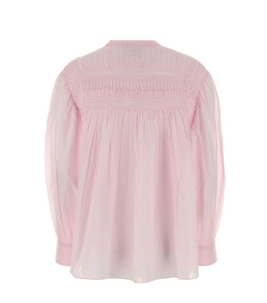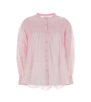 Long-sleeve top in white cotton voileButtoned frontGathered