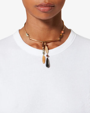 Articulated stone bead and brass necklace with "Isabel Marant" engraving