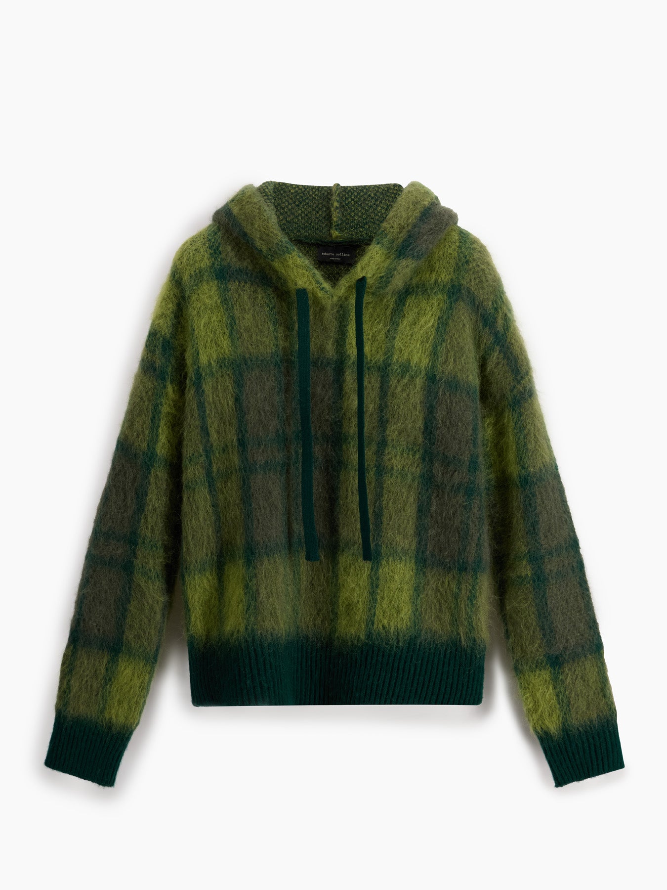 Knit long sleeve hoodie sweater in green.