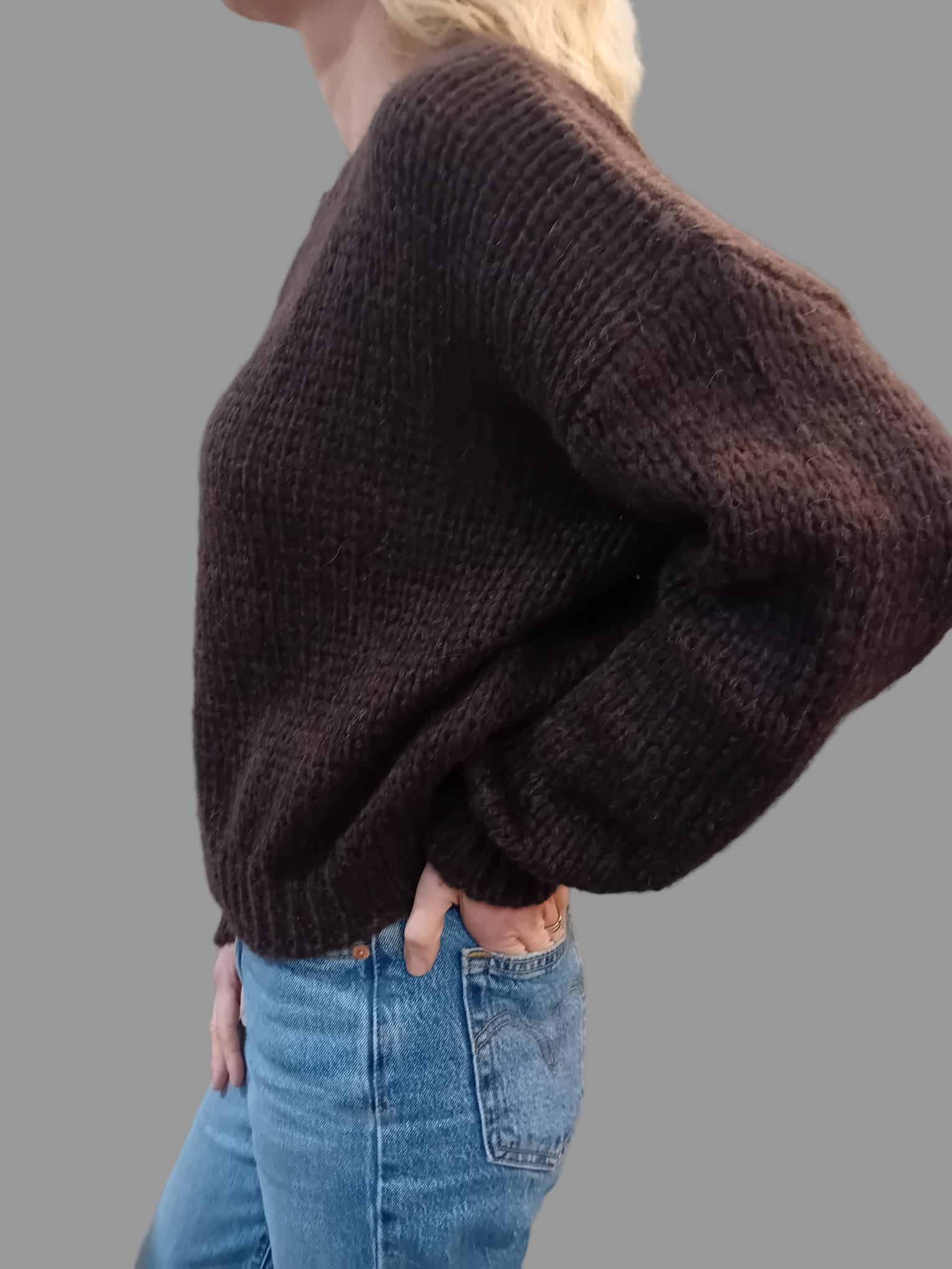 Long sleeve round neck knit jumper in burgundy.