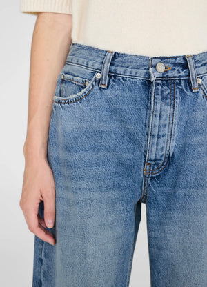 Cut from midweight regenerative cotton denim in Baltic Blue, the Fritz Jean features a softly structured barrel silhouette that flatters your figure. A destructed wash and vintage-inspired grinding add character, giving this pair a timeless, well-worn feel.