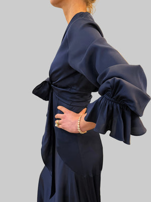 Silk bolero in navy which pairs well with the elegant Mar-a-Lago evening dress.