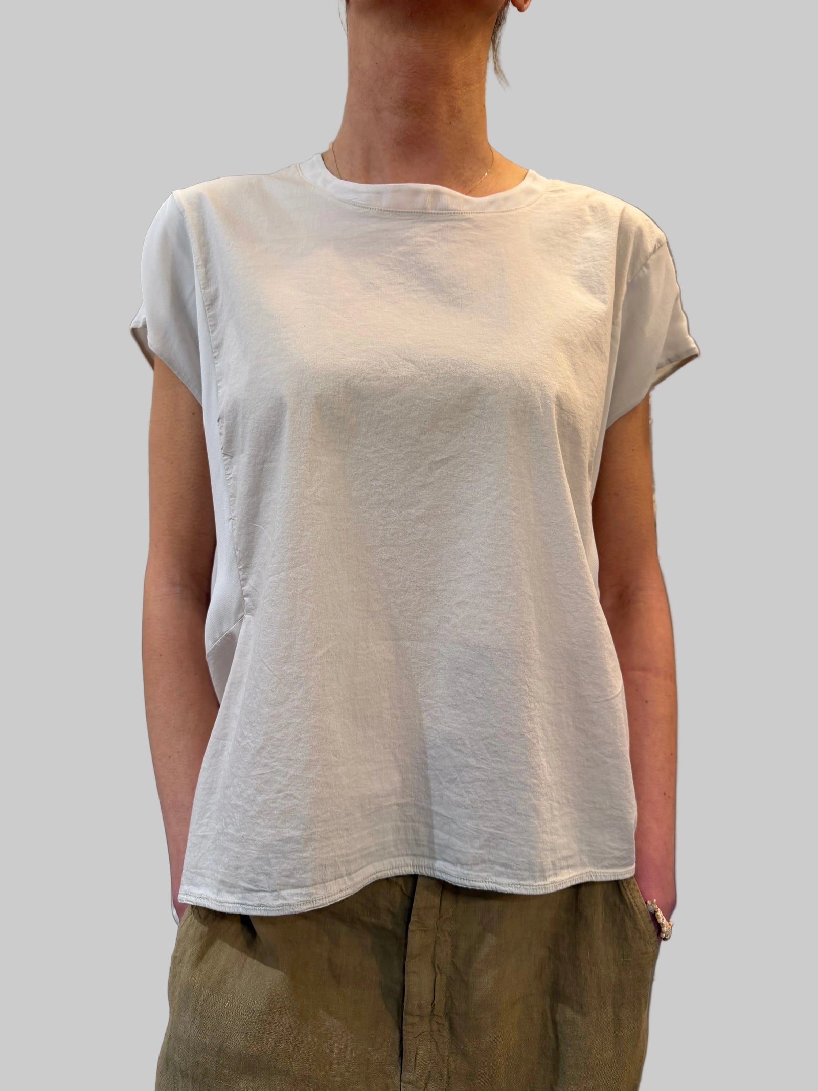 £245.00 GBPTransit Stretch poplin shirt with viscose georgette inserts and back opening with mother-of-pearl buttons