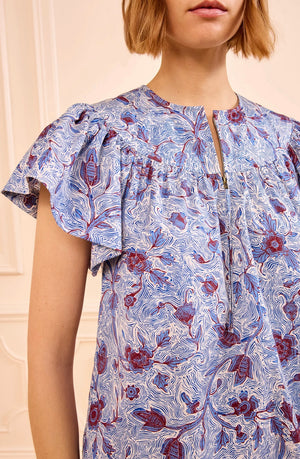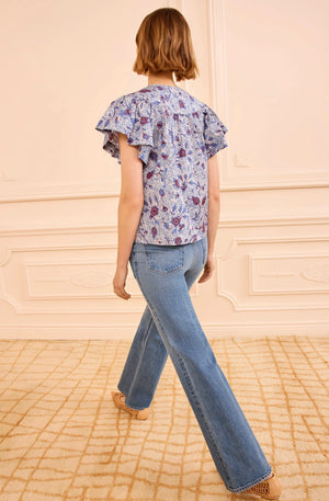 The Perline Top brings easy elegance to the everyday. Crafted from soft poplin, this airy top is patterned with delicate blooms inspired by watercolors and is framed by signature flutter sleeves.