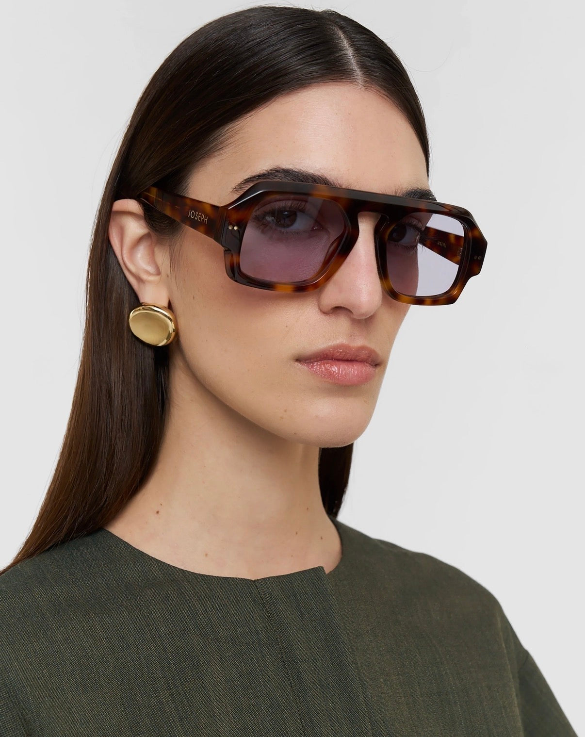 The Talba Aviator Sunglasses are a modern, straight brow design, elegantly paired with light tinted lenses. Crafted from acetate with 100% UV protection.