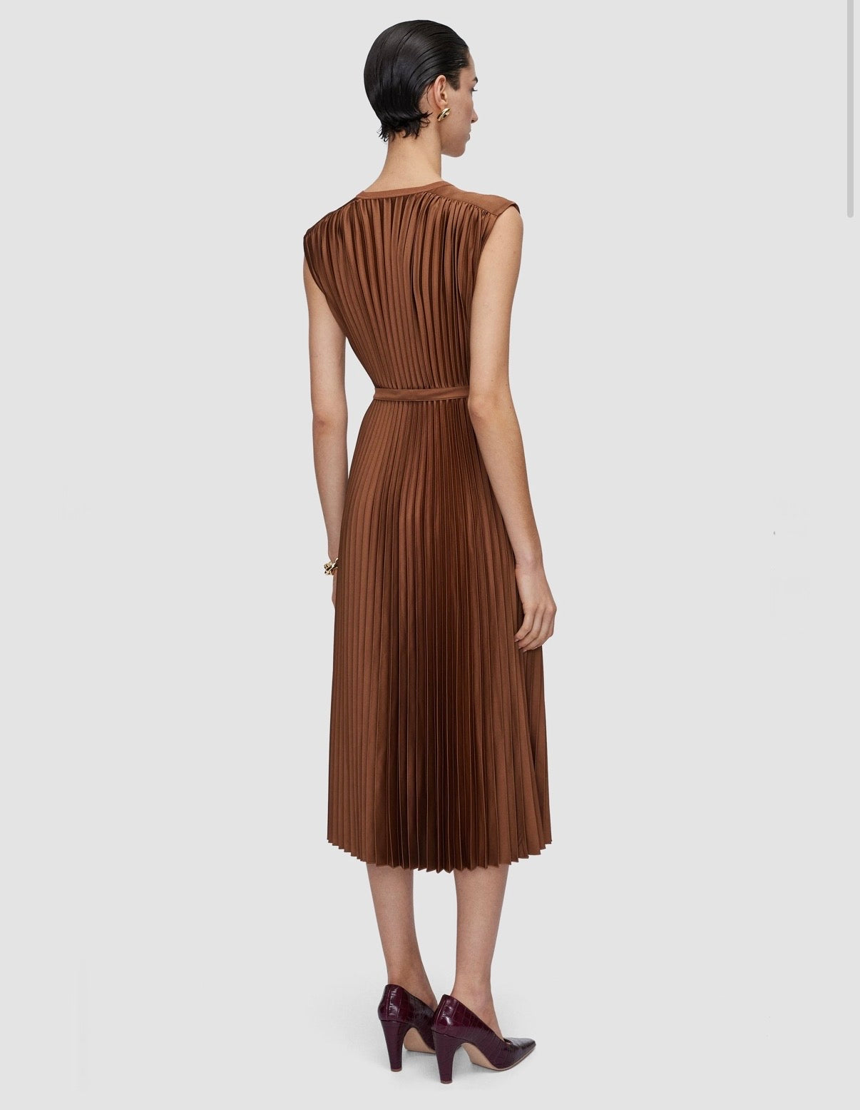 The Volta Knit Weave Plissé Dress is a relaxed fit, pleated dress, crafted from a crepe yarn which offers a smooth, silk-like hand feel. This fluid style features a gathered, elasticated waist with a tie belt. Simple and elegant in design, this dress is ideal for any occasion.
