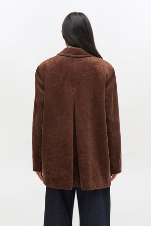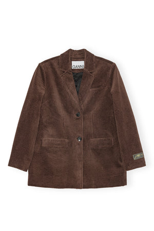 This blazer features a collar, button-front closure, 3 pockets and a GANNI logo patch at the sleeve hem.