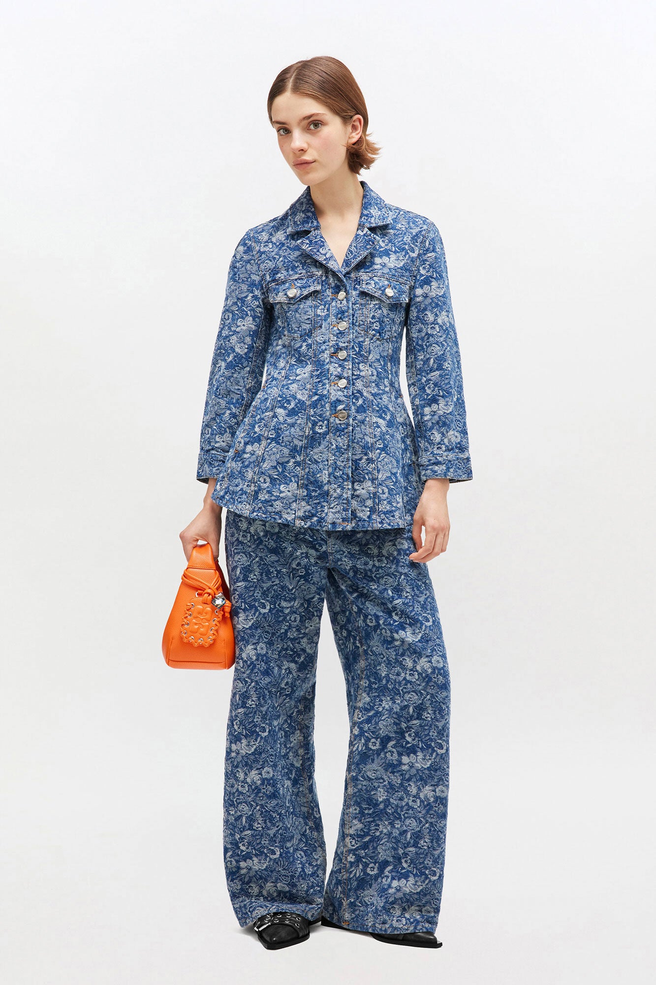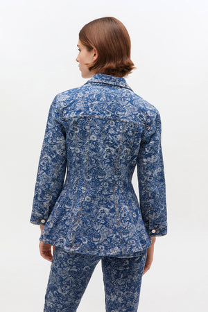 This blazer features a collar, button-front closure, long sleeves and chest pocke